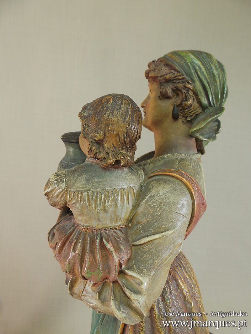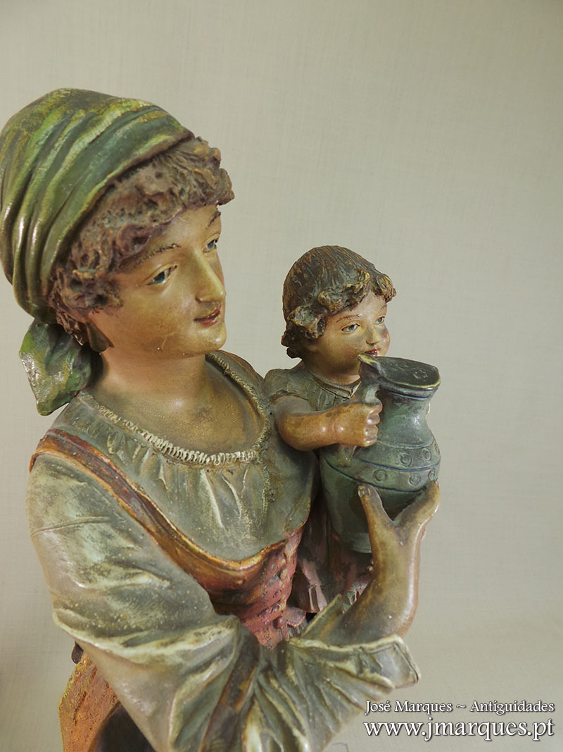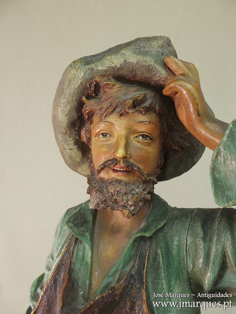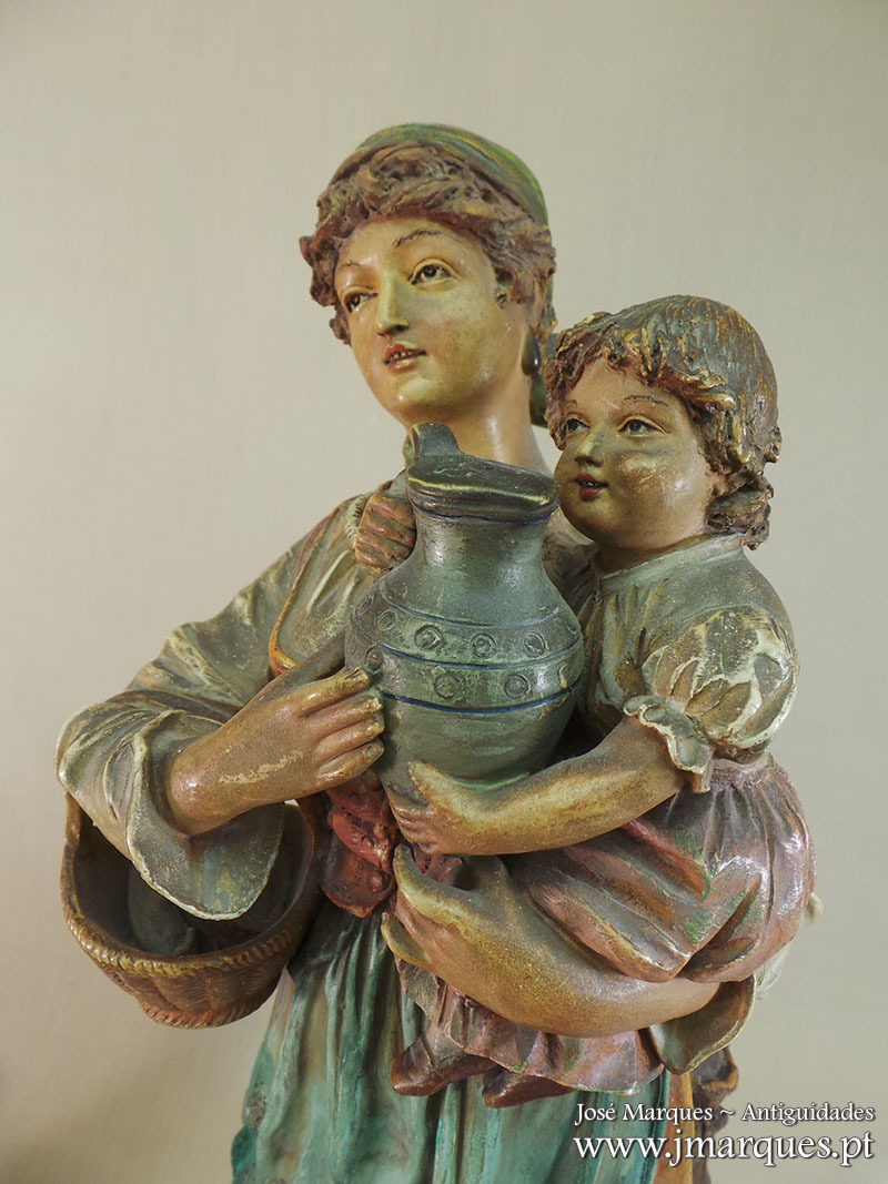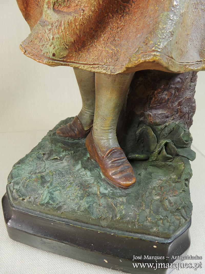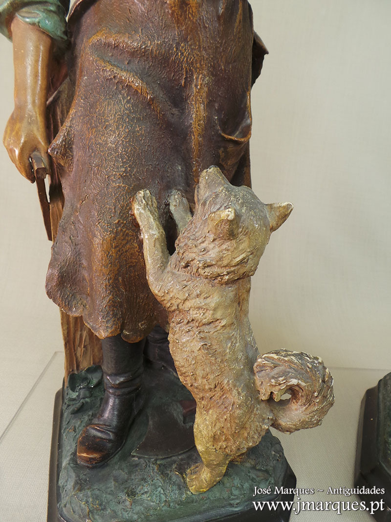 Par de esculturas antigas de camponeses em barro fino, ligeiros defeitos.