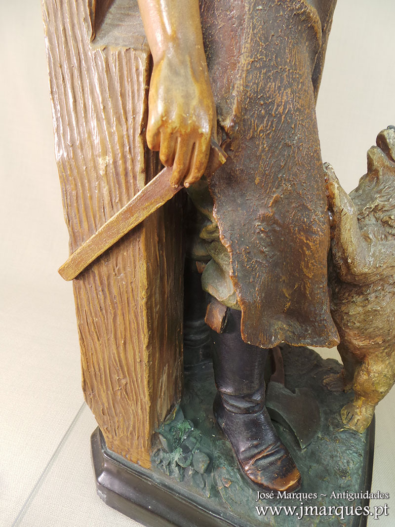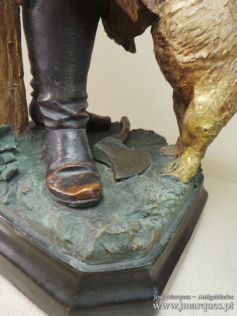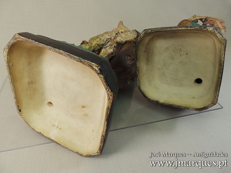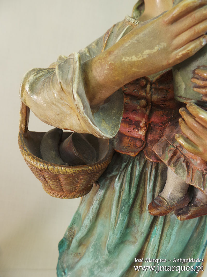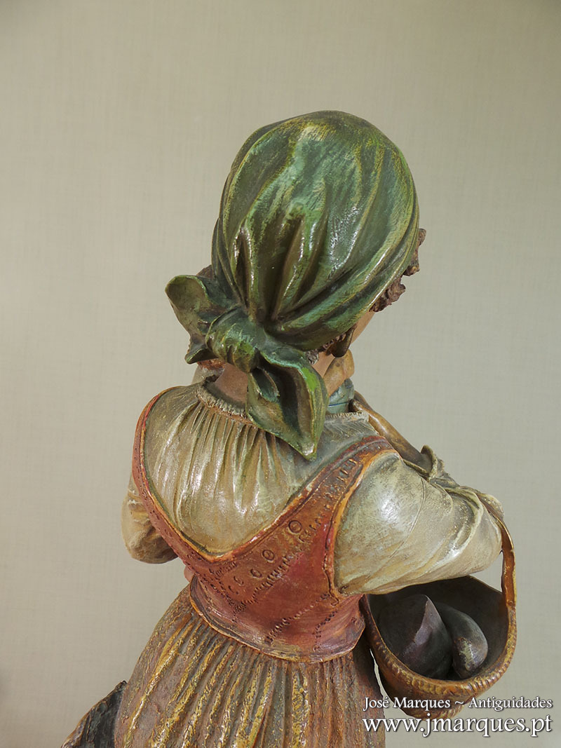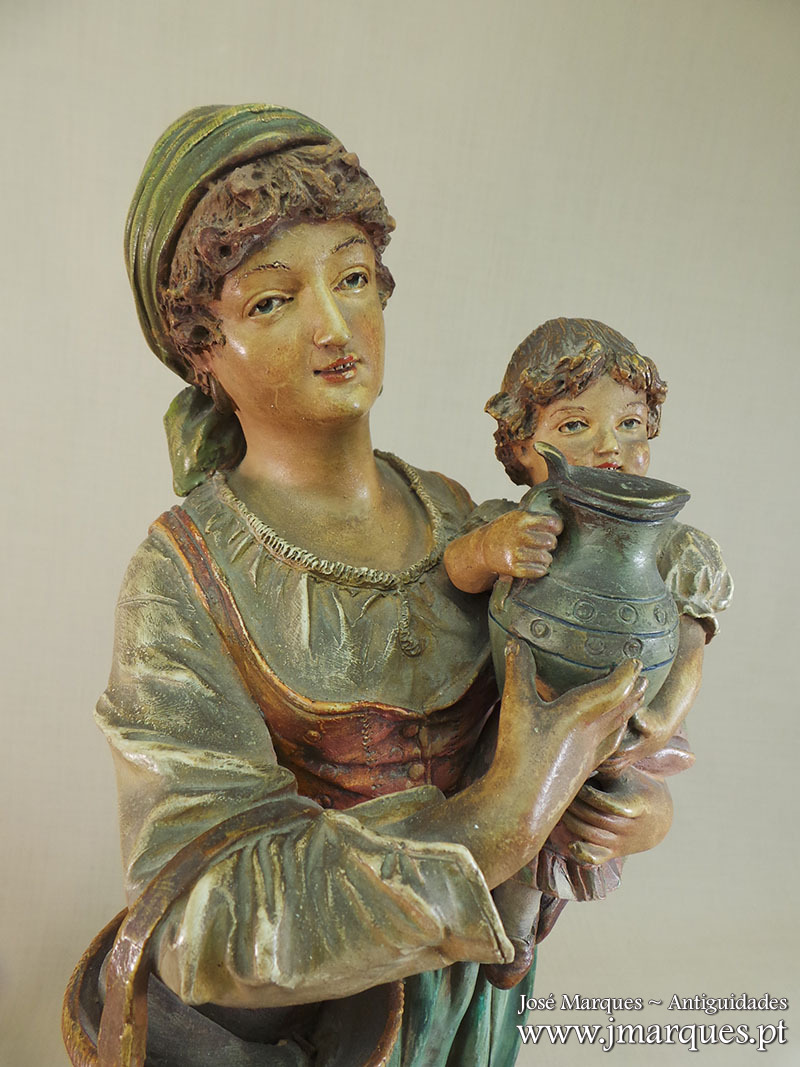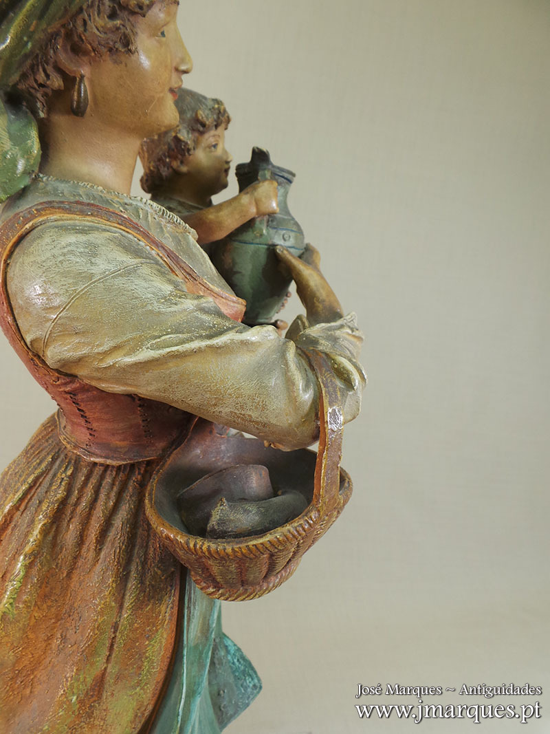 Par de esculturas antigas de camponeses em barro fino, ligeiros defeitos.