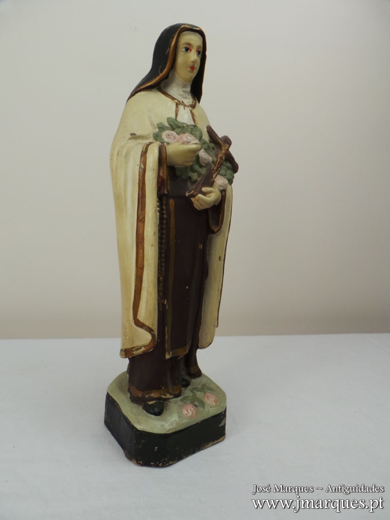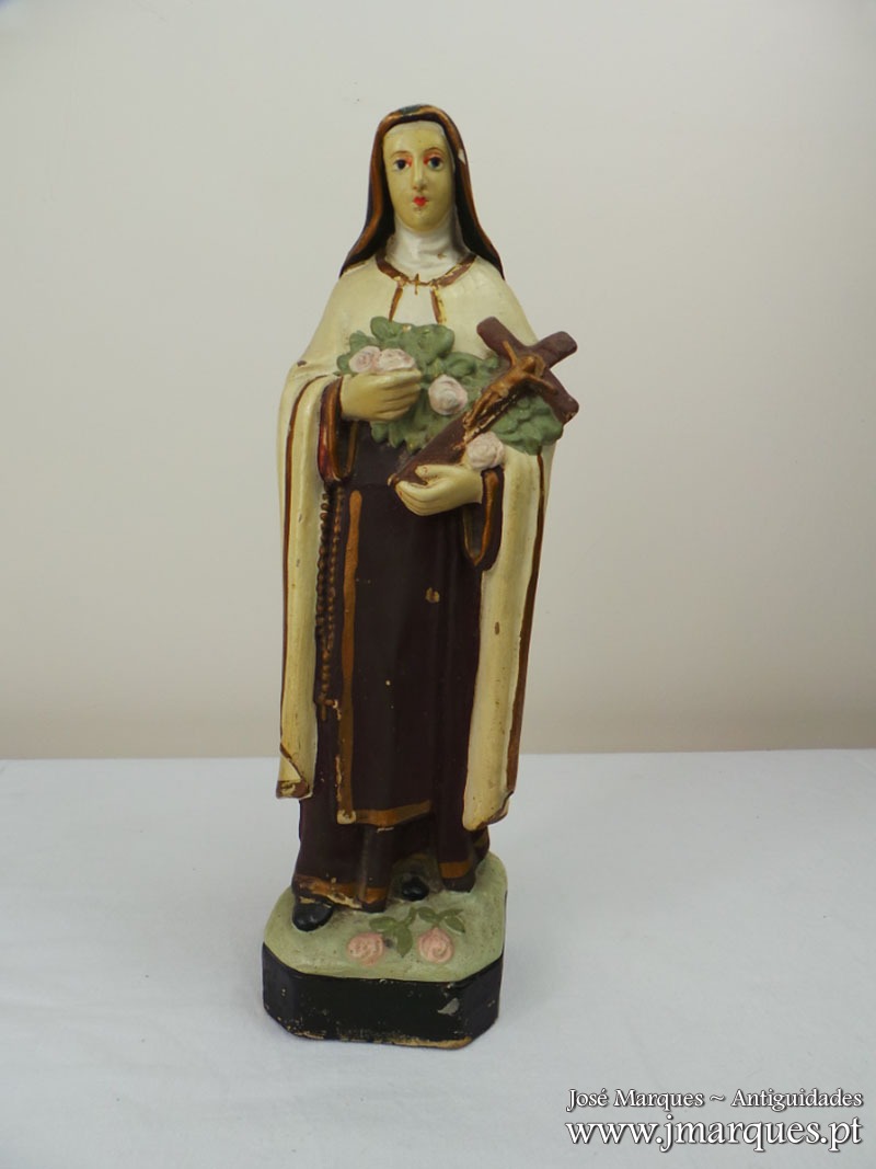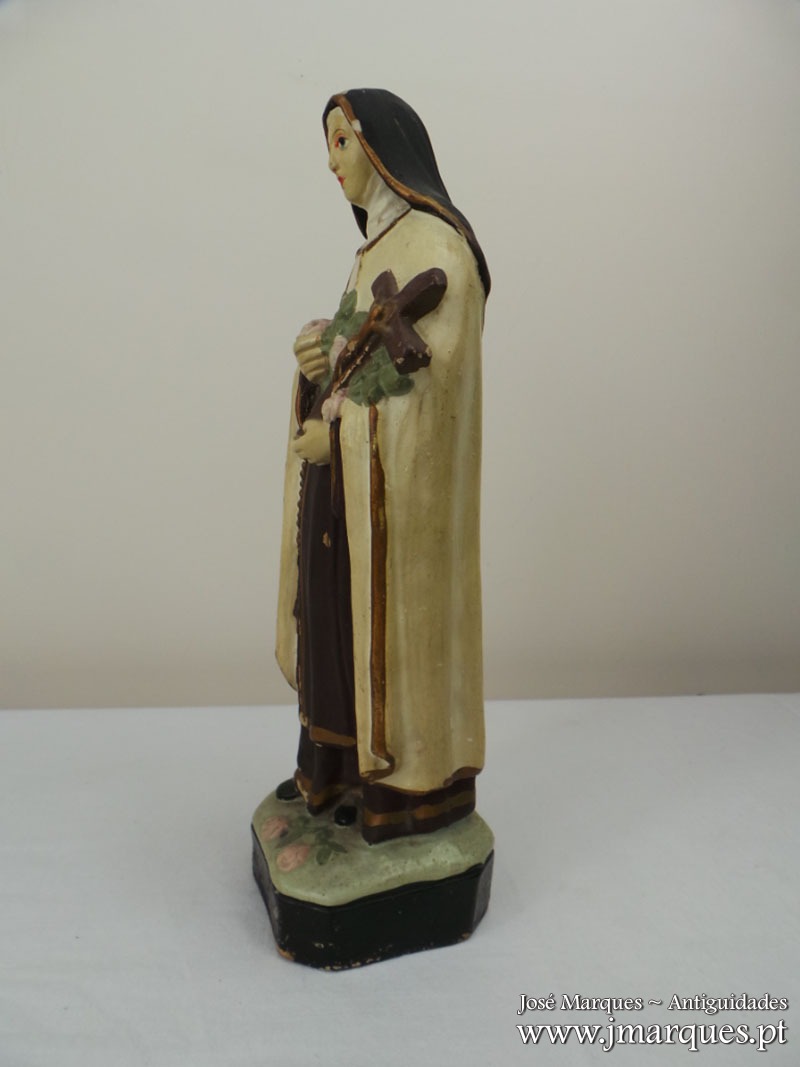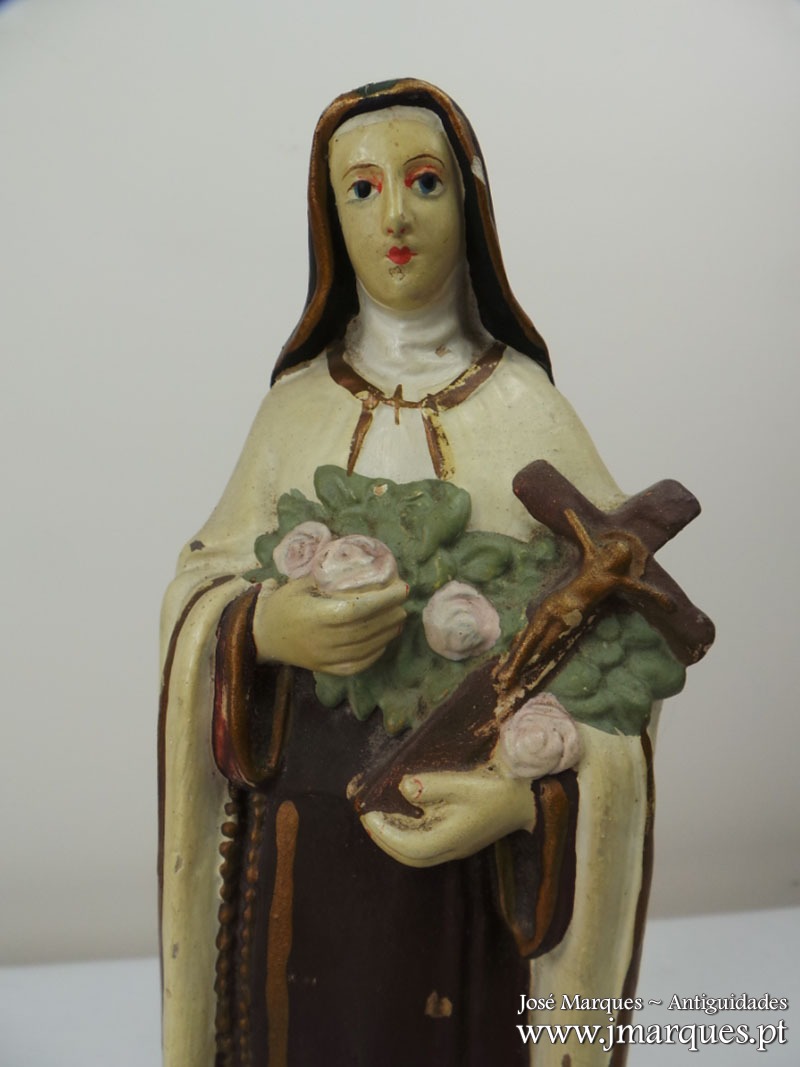Santa Teresa antiga em barro. Escultura pintada. Ligeiros defeitos.