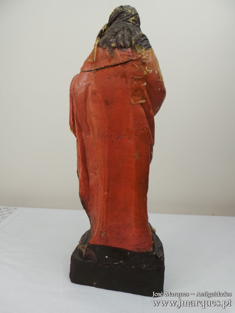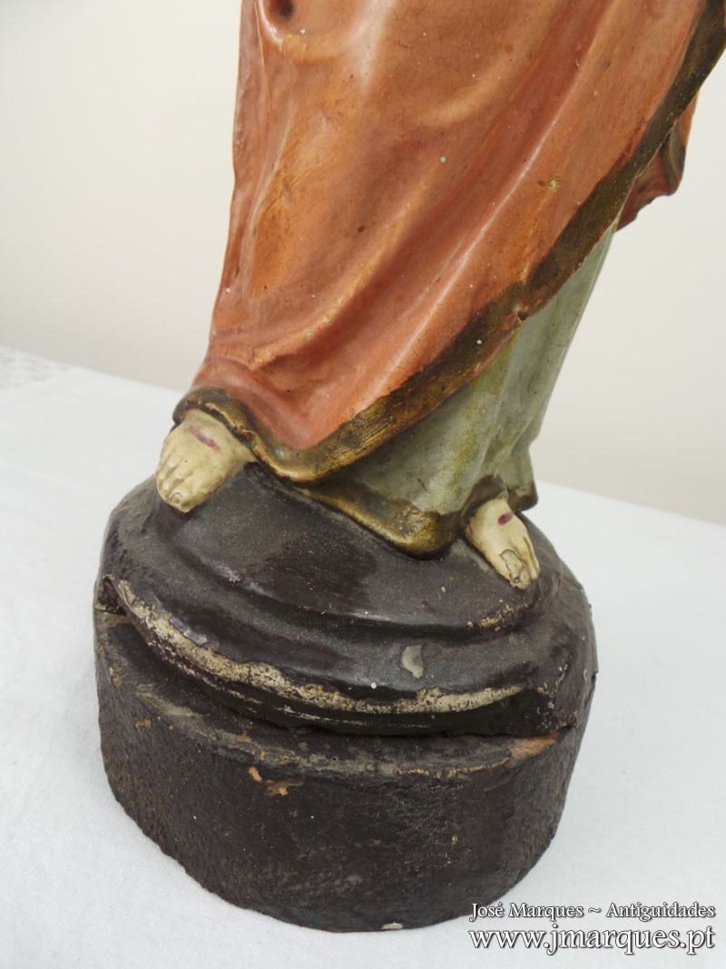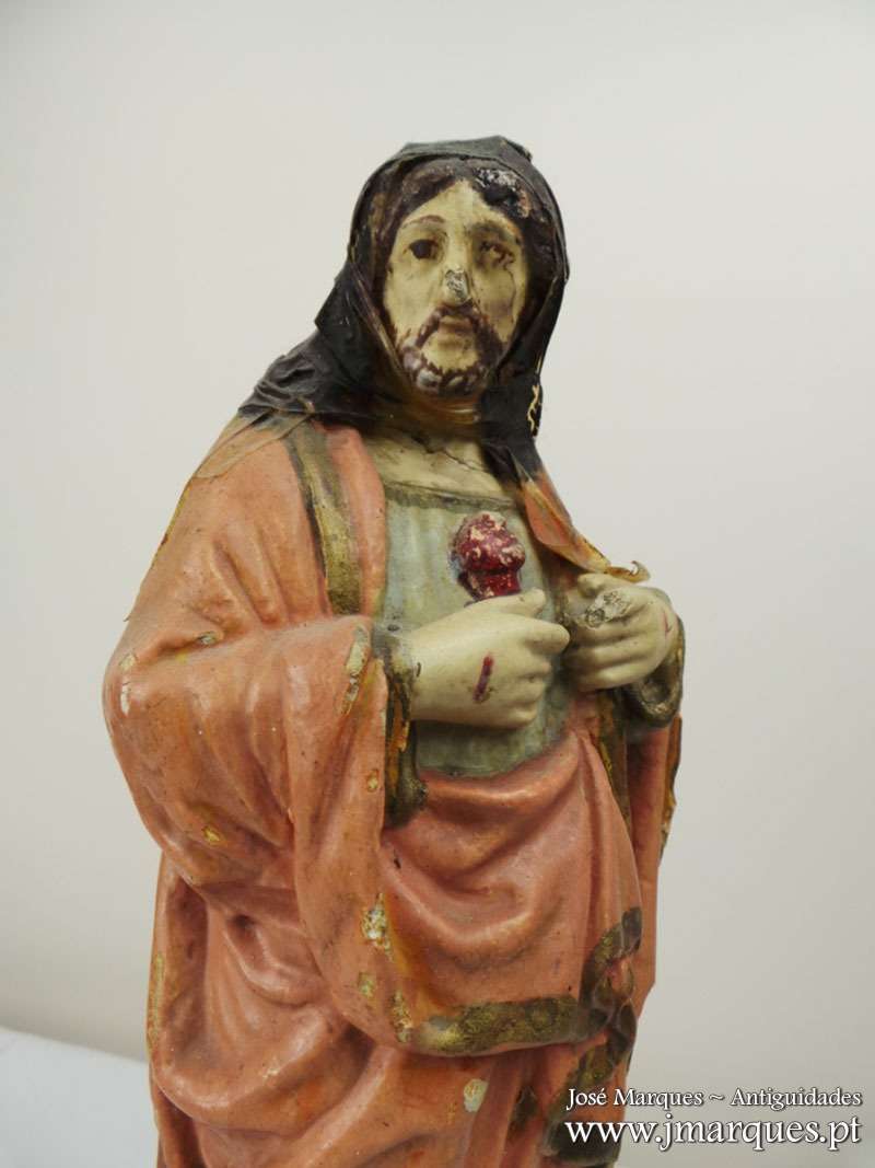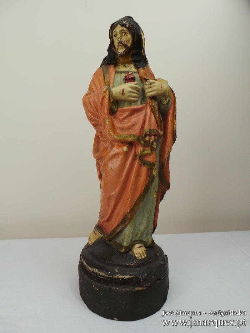 Escultura de Cristo em barro pintado. Peça partida e colada e outros defeitos.