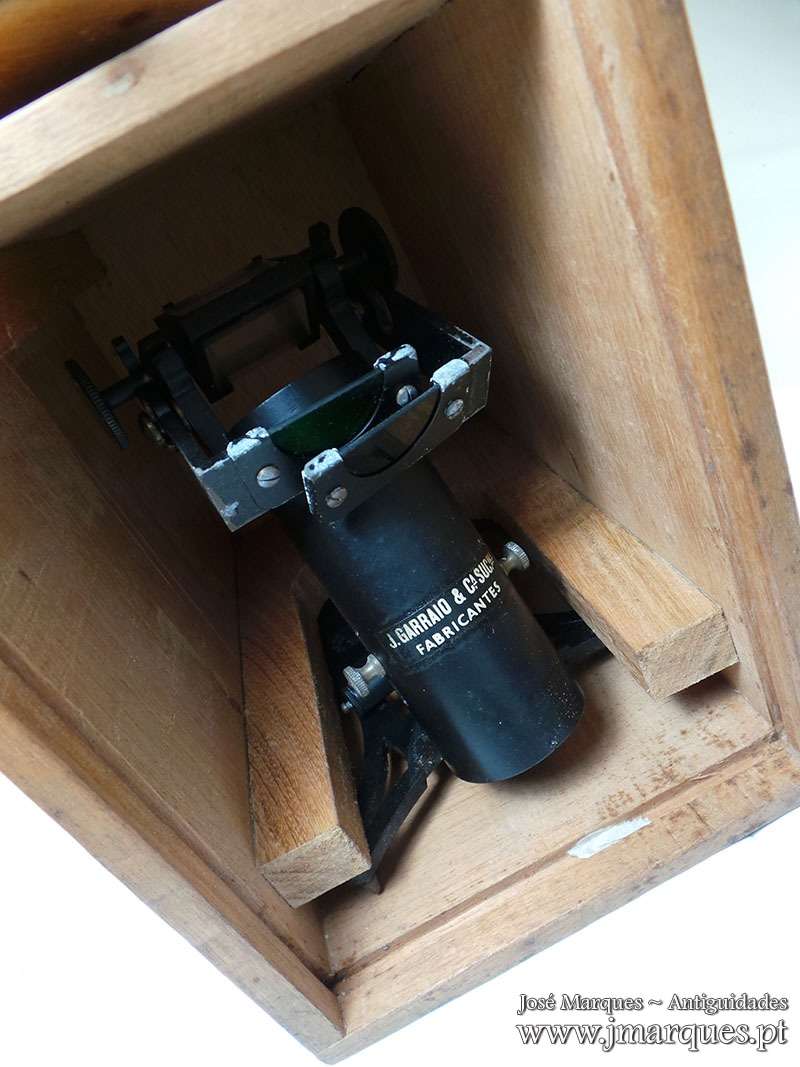 Azimute antigo de marinha. Marca: Carraio – Lisboa. Sinais de uso. As medidas apresentadas são da caixa